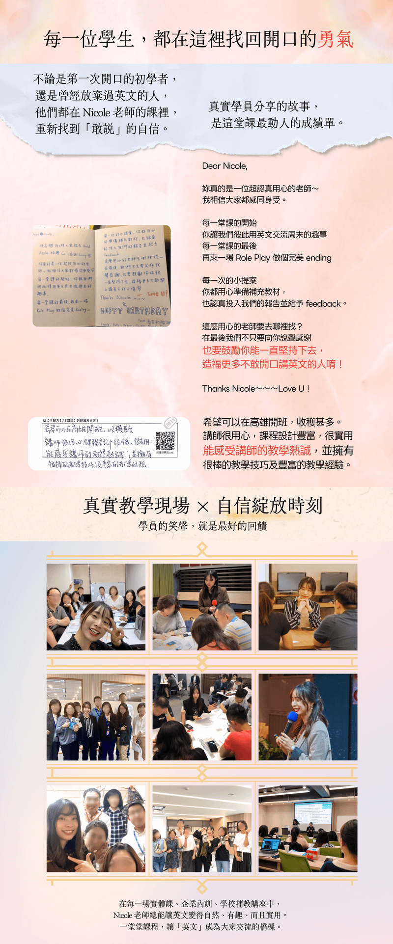由 Nicole 老師親自指導矯正發音,幫你開口更自信。
